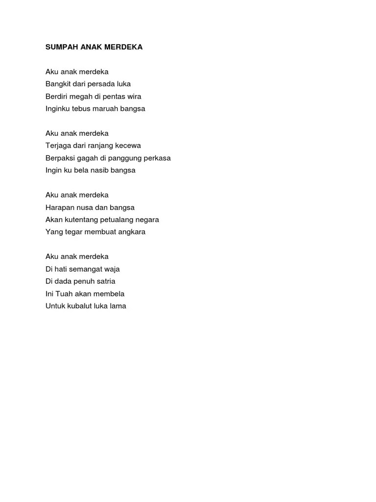 Yang tidak mengenal erti kekecewaan. Sajak merupakan puisi melayu moden yang berbentuk bebas dan tidak terikat. Sumpah anak merdeka aku anak merdeka bangkit dari persada luka berdiri megah di pentas. Aku sama menagih kemerdekaan kekasih,.
